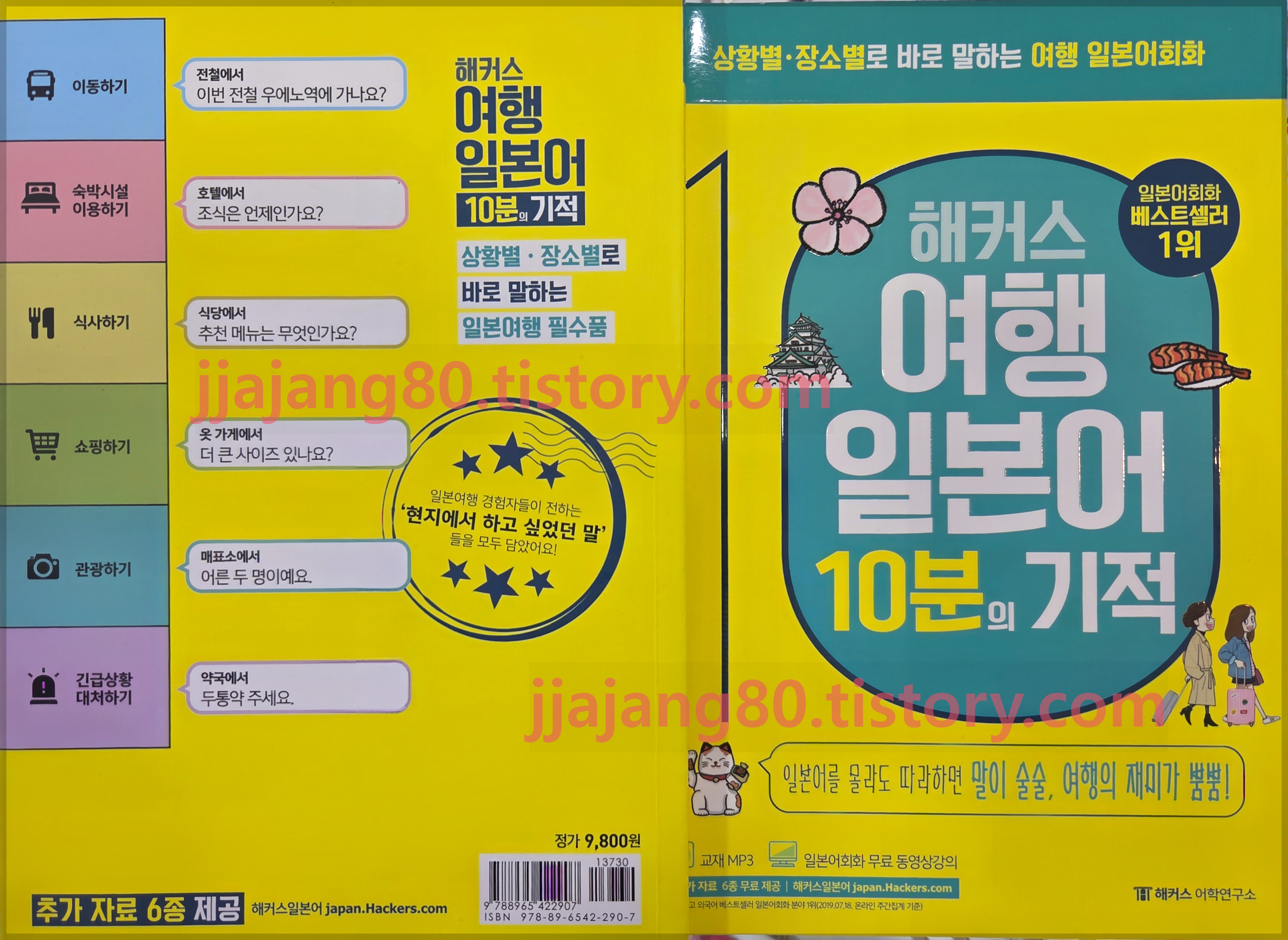 작년에 일본 여행을 갔다가 엄청 고생했다. 물론 맨땅에 헤딩할 생각으로 간 것이었지만 도로도 좌우가 반대지, 지도도 잘 못 보지, 말도 잘 안 통하다 보니 너무나 기억에 남는 여행을 하고 돌아왔다. 그래서 다녀온 이후로 일본에 대한 공부를 열심히 하여 제대로 알고 다시 일본을 찾으리라 다짐을 하고 먼저 일본어 관련된 책을 구입하였다. 기본이 되는 입문서를 구입할까 생각도 해보았지만, 루틴처럼 하루에 해야 할 일이 정해져 있는 상황에서 히라라나, 가타가나에 올인할 수 없는 상황이라 가장 실용적으로 보이는 "여행 일본어" 서적이 눈에 들어왔다. 그래서 고른 책이 [해커스 여행 일본어 10분의 기적]이다.