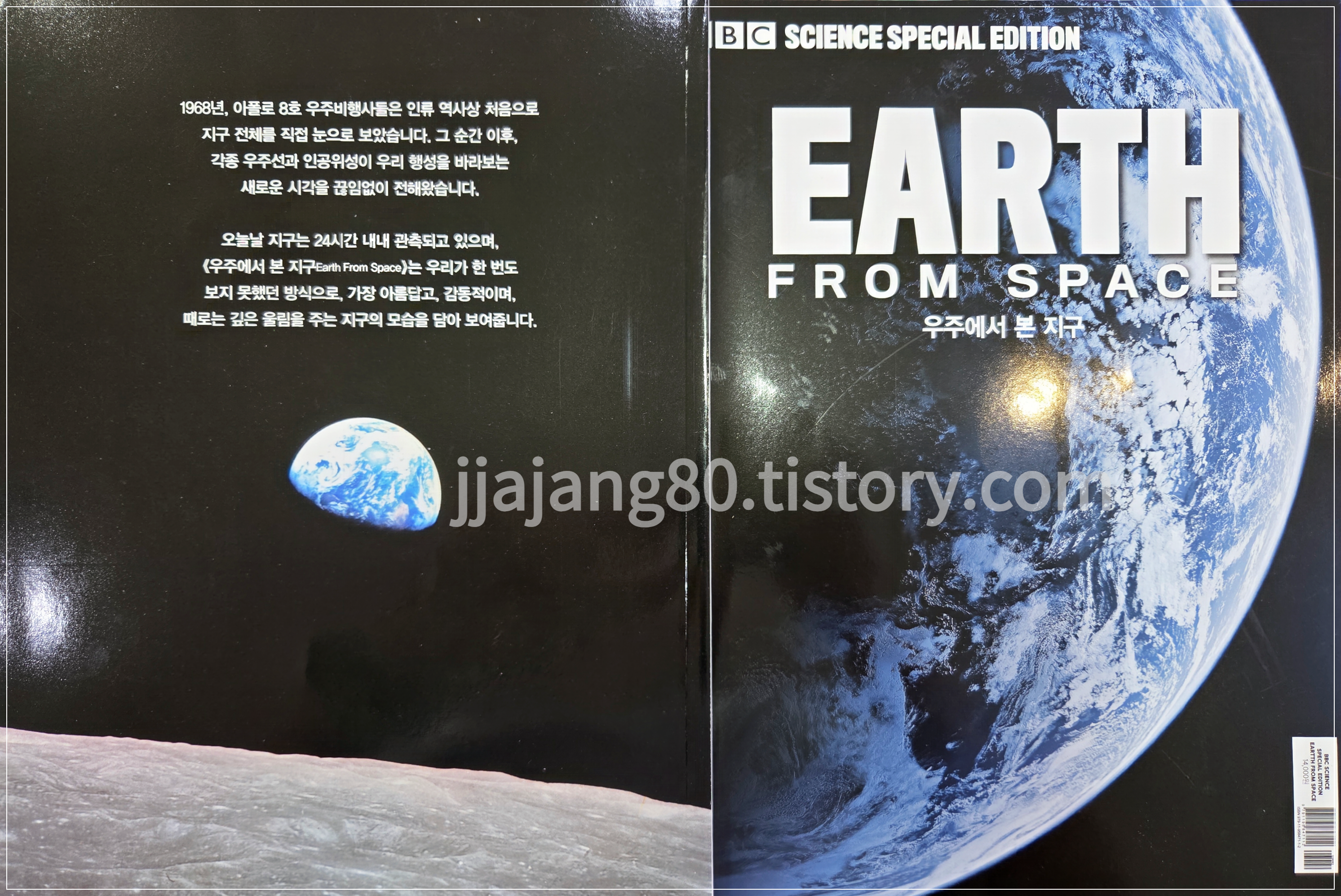 우리는 '지구'라는 행성에서 살고 있다. 최근 환경오염과 생태파괴가 지구를 살아가는 다른 동식물들에게 많은 피해를 줄 수 있음을 인식하면서 새삼 지구가 어떤 역사를 거쳐왔고, 어떤 과정을 겪게 될지를 주목하게 된다. TV채널을 무심결에 돌리다가 문득 멈추게 만든 보석 같은 방송이 있다. 바로 "BBC Earth"이다. The Earth에 걸맞게 주로 세계의 자연과 다양한 문화, 신비한 동·식물의 생활을 엿보며 감탄에 감탄을 자아내고는 하는데, 한 발치 물러나 지구 밖에서 지구를 바라본다면 어떤 풍광이 펼쳐질까 궁금하기도 하였다. 인공위성의 발달과 첨단 우주과학은 머나먼 우주로 영역을 넓혀가기 위한 목적도 있겠지만 지구의 모습을 알아가며 비밀스러운 궁금증에 대한 해답을 찾아감도 있지 않을까 생각한다. [우주에서 본 지구(Earth From Space)]는 총 100쪽에 달하는 지구라는 행성에 대한 화보집이라고 할 수 있다.