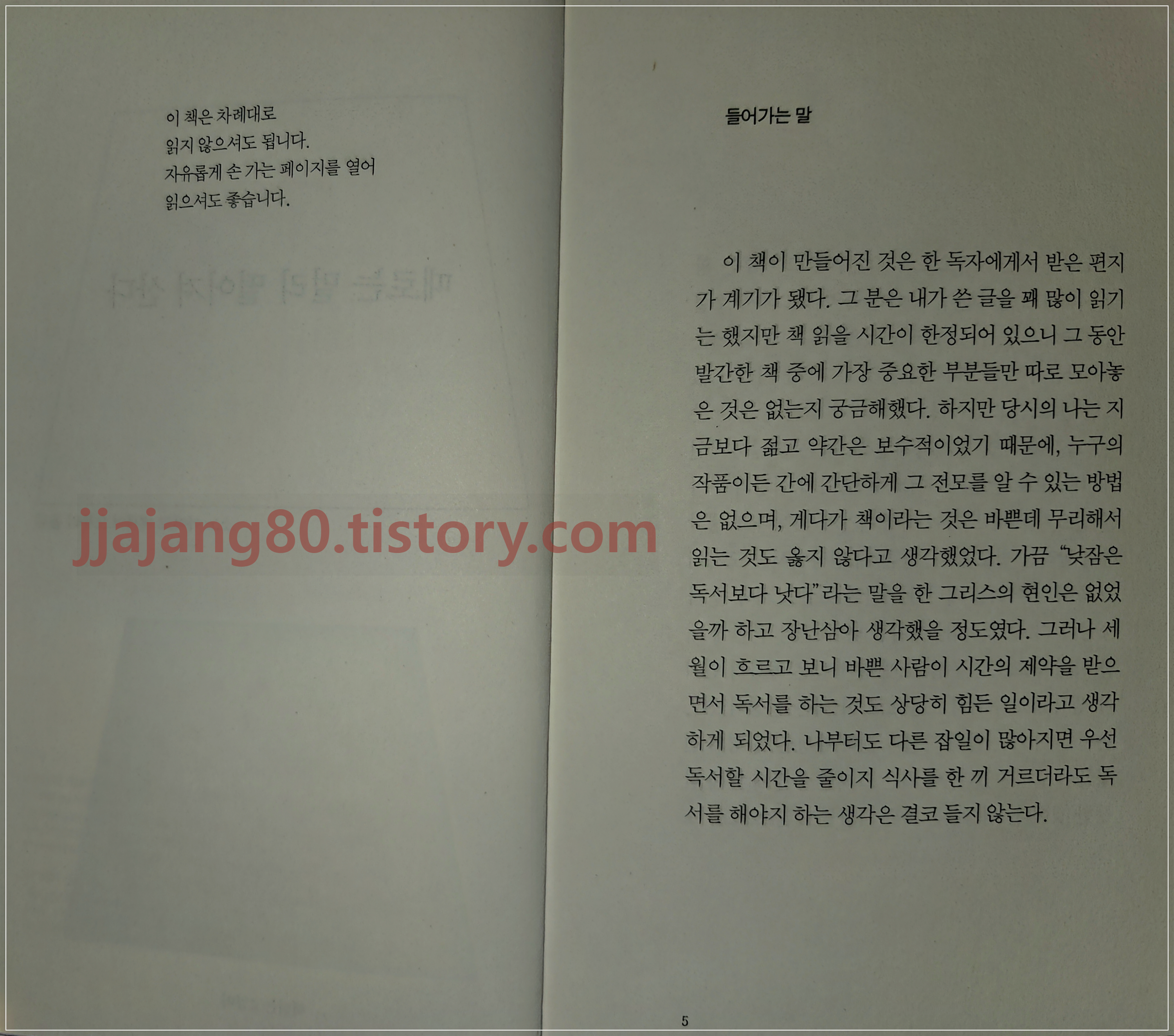 사실 이 책은 저자의 이전에 출판된 에세이집의 진액만을 추출하여 재구성하여서 크게 새로울 것은 없다고 느낄지도 모르겠다. 하지만 네 가지 주제어로 구분한 것은 본래 에세이집에서의 느낌과 다르게 다가온다. 새로운 스토리가 만들어진 느낌이랄까. 그래서 왠지 모르게 나만의 남모를 아픔을 치유받는 기분이다. 개인적으로는 3부의 '인간'에서 노화된다는 것과 죽는다는 것의 의미와 이를 준비하는 성찰의 글들을 보며 참 담백하게 받아들이는 저자의 모습이 인상적이었다.
